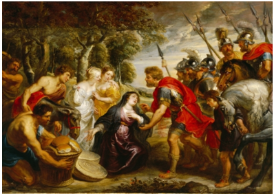 나발이 다윗의 호의를 무시하고 쫒아내는 바람에 다윗은 화가 머리끝까지 올라서 나발의 집을 멸절시키려고 군사들을 데리고 들어옵니다. 이 이야기를 종을 통해서 들은 아비가일은 상황의 위급성을 꺠닫고 곧바로 떡과 포도주와 고기등을 챙겨서 다윗을 만나서 출발하게 됩니다. 다행히도 다윗 일행이 나발의 집에 도착하기 전에 아비가일은 다윗 일행을 만날 수 있었습니다.